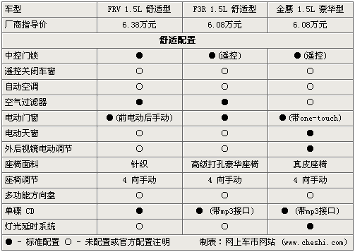在舒適配置方面,三款車(chē)型中吉利金鷹明顯高出一截,遙控門(mén)鎖、電動(dòng)門(mén)窗及電動(dòng)天窗都為標(biāo)配,并且座椅也為真皮材質(zhì)。而駿捷FRV采用前電動(dòng)后手動(dòng)的設(shè)計(jì)有些不應(yīng)該,并且座椅也只為針織材質(zhì)。三款車(chē)都標(biāo)配了單碟CD,滿足消費(fèi)的娛樂(lè)需求。