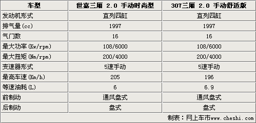 東風(fēng)雪鐵龍世嘉三廂和標(biāo)致307動(dòng)力系統(tǒng)相同,都是2.0升直列4缸發(fā)動(dòng)機(jī)并且同時(shí)運(yùn)用了電子節(jié)氣門技術(shù),該技術(shù)可以能根據(jù)駕駛員的需求愿望以及整車各種行駛狀況確定節(jié)氣門的最佳開(kāi)度,保證車輛最佳的動(dòng)力性和燃油經(jīng)濟(jì)性。兩款車型的動(dòng)力輸出完全一樣,但是由于各自的整備質(zhì)量和設(shè)計(jì)不同,所以在最高時(shí)速和油耗上有所區(qū)別。兩款車型的變速系統(tǒng)均是5速手動(dòng)變速箱。制動(dòng)方式兩款車型均為前通風(fēng)盤式后實(shí)心盤式的剎車。