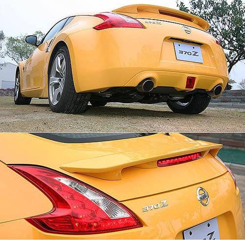 為了強(qiáng)化運(yùn)動氣息,標(biāo)準(zhǔn)版的370Z標(biāo)配后擾流尾翼;雖然造型不顯夸張,仍頗具畫龍點(diǎn)睛之效;而后保桿的造型也小有來頭:左右大口徑雙出尾管已是性能車不可或缺的身份表彰,設(shè)計(jì)師更在中央位置加入一組方型后霧燈。除了后霧燈的作用外,此一燈具在踩踏剎車時也會同步有反應(yīng),頗有模仿F1賽車雨天警示燈組的意味。