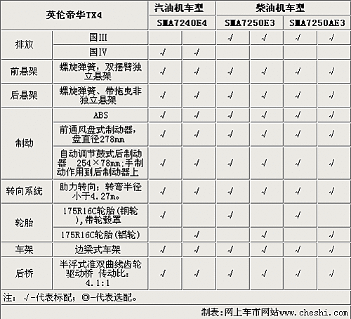 英倫TX4的柴油版只達到國Ⅲ的排放標準,而汽油版車型卻達到了國Ⅳ排放標準。這款車型采用雙擺臂獨立前懸架,拖曳臂非獨立后懸架,制動系統(tǒng)采用前通風盤式,后鼓式制動器。TX4采用175R16C的輪胎,不過低配車型卻只配備鋼輪轂。
