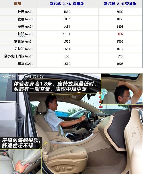 新君威的前排頭部余量和新君越一樣,但后排就差很多