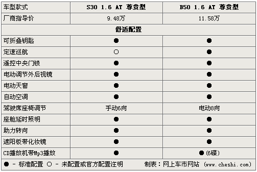 應(yīng)該說(shuō),從尺寸及動(dòng)力上B50有些許優(yōu)勢(shì),而在安全配置上不分伯仲,僅在舒適配置上相差定速巡航等幾個(gè)配置,不過(guò)需要考慮是兩者的差價(jià)是2.1萬(wàn)元,那么,您是選一汽的B50還是二汽的S30,需要仔細(xì)斟酌一下了!