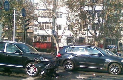 事情的經(jīng)過(guò)一定很復(fù)雜,不過(guò)車(chē)禍的現(xiàn)場(chǎng)很簡(jiǎn)單,我們可以看到兩輛保時(shí)捷卡宴前臉損毀,而B(niǎo)MW X5好像沒(méi)什么事,可以直接開(kāi)回家。