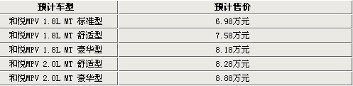 依照江淮汽車(chē)的定價(jià)規(guī)則,和悅MPV很有可能采用同悅的定價(jià)特點(diǎn),預(yù)計(jì)會(huì)推出1.8L、2.0L兩個(gè)排量共計(jì)五款車(chē)型。另外,和悅MPV的入門(mén)級(jí)車(chē)型很有可能會(huì)定下較低的價(jià)格,使該系列產(chǎn)品擁有一個(gè)低價(jià)的宣傳策略,往往這種入門(mén)級(jí)低配車(chē)型很難銷(xiāo)售,或者是根本無(wú)車(chē)銷(xiāo)售。從同悅的配置價(jià)格差異來(lái)看,和悅MPV的價(jià)格區(qū)間應(yīng)該會(huì)定在6.98-8.88萬(wàn)元左右。除了6.98萬(wàn)元的入門(mén)級(jí)車(chē)型,和悅MPV同排量的舒適型和豪華型價(jià)格相差6000元左右,而同配置不同排量的兩款車(chē)的價(jià)格差應(yīng)該在7000元左右。