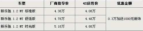 據(jù)北京上海通用五菱4S銷售人員介紹,新樂馳目前在售的車型分為3款手動擋車型,分別為標準版、舒適版和時尚版,售價區(qū)間為4.38萬元-5.18萬元。為了迎接60周年大慶的來臨,新樂馳出現(xiàn)了優(yōu)惠現(xiàn)金3000元及加送1000元裝飾的活動,此次優(yōu)惠活動截止日期為10月25日。