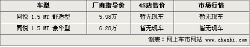 據(jù)銷售人員介紹,現(xiàn)在北京授權(quán)經(jīng)銷同悅系列車型的經(jīng)銷商并不多。各家店內(nèi)已經(jīng)開始大量銷售兩廂同悅RS系列車型,問及1.5L的同悅系列時(shí),經(jīng)銷商表示仍未上市。不過現(xiàn)階段在店內(nèi)購(gòu)買1.3L同悅?cè)龓?RS全系車型可給出3800元的現(xiàn)金優(yōu)惠。