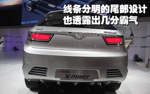 從尾部看上去,廣汽X-power概念SUV的線條非常分明,但由于尾燈的配合,顯得非常霸氣。這款SUV的尾燈采用紅色的設(shè)計,四周配備了鍍鉻裝飾條,而且尾部還設(shè)計了擾流唇和造型獨(dú)特的排氣口。