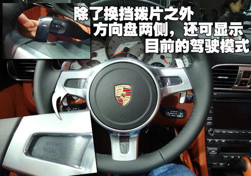 配備PDK雙離合變速器的2010款保時捷911 Turbo敞篷版,可以通過選裝帶有換檔翹板開關的新款選裝三輻方向盤取代帶有傳統(tǒng)換檔按鈕的標準方向盤。換檔翹板開關牢固安裝在方向盤上,右側的翹板開關用來升檔,左側的翹板開關用來降檔。
