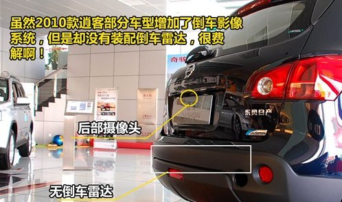 新的逍客在外觀上沒有任何變化,僅僅只在原來6款車身顏色的基礎(chǔ)上增加夢(mèng)幻銀色。更多的變化出現(xiàn)在車輛內(nèi)部的配置上,部分車型增配了倒車影像系統(tǒng),但我們卻認(rèn)為這個(gè)并不實(shí)用,因?yàn)槠聊恢挥?.3英寸,也就是和一般車載導(dǎo)航儀的大小相當(dāng),而且分辨率比較低,所以顯示效果不好。令人費(fèi)解的還有,有了攝像頭之后,逍客卻沒有裝配倒車?yán)走_(dá),其實(shí)大家在倒車的時(shí)候,倒車影像只是作為參考,主要還是依靠倒車?yán)走_(dá)的聲音來判斷距離遠(yuǎn)近,所以沒有倒車?yán)走_(dá)很不方便。