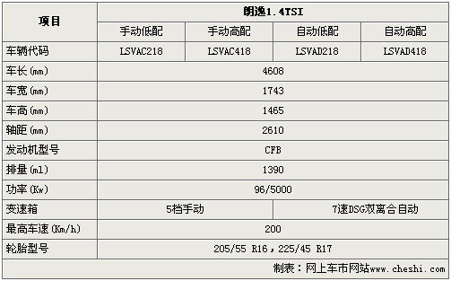 朗逸1.4TSI車型于上海國際車展首演后將于年內(nèi)正式上市,相比普通版版車型朗逸1.4TSI不僅在外觀和內(nèi)飾上均有不同程度的變化,而且還將搭載1.4升渦輪增壓燃油直噴引擎。雖然朗逸1.4TSI車型離上市還有一段時(shí)間,但是通過以下參數(shù)配置曝光,我們可以提前一睹朗逸旗艦車型的到底具備怎樣的性能。