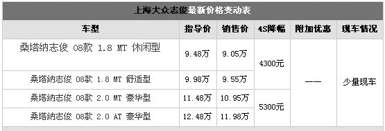 日前車天下汽車網(wǎng)記者獲悉,桑塔納志俊全系車型最高有5300元的讓利,同時(shí)當(dāng)天定車還可獲2500元裝潢禮包、油卡以及GPS抽獎(jiǎng)等禮品。感興趣的朋友可以到當(dāng)?shù)亟?jīng)銷商處了解實(shí)際情況。