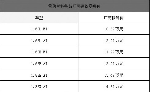 2009年4月9日,上海通用汽車公布了倍受關(guān)注的新生代性能中級車雪佛蘭科魯茲的售價。雪佛蘭科魯茲此次共有1.6L和1.8L兩款排量六種不同配置的車型,配備五速手動和S6六速手自一體變速箱,并有六種車身顏色可供選擇,最終價格區(qū)間定為10.89-14.89萬元。即日起全國各地的雪佛蘭經(jīng)銷商店開始接受預(yù)訂。