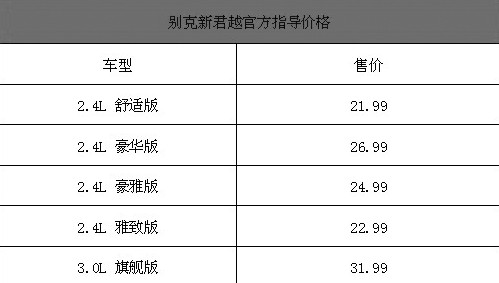 7月8日,別克君越換代車型新君越公布價格上市,價格從21.99-31.99萬元區(qū)間,比我們之前預(yù)測的價格稍高一些,其中新君越頂配車型的售價超過30萬元區(qū)間,以下是新君越各款車型官方指導(dǎo)價格:別克新君越官方指導(dǎo)價格