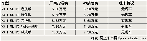 據(jù)東南汽車(chē)4S店銷售人員介紹,目前V3菱悅現(xiàn)車(chē)比較少,只有豪華版和旗艦升級(jí)版有現(xiàn)車(chē)銷售,風(fēng)采版少量現(xiàn)車(chē)會(huì)在近期到店。而其他車(chē)型目前只能接受預(yù)訂,預(yù)計(jì)半個(gè)月左右能夠提到現(xiàn)車(chē)。目前購(gòu)買(mǎi)V3菱悅沒(méi)有任何優(yōu)惠政策,而且并不贈(zèng)送裝飾。