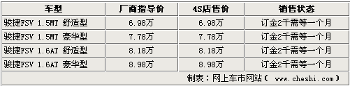 經(jīng)銷商透露,現(xiàn)在各店內(nèi)的FSV基本為展車或已被客戶預(yù)訂的車輛,基本沒(méi)有現(xiàn)車可以滿足消費(fèi)者的需要,消費(fèi)者如需購(gòu)買可以繳納2千元訂金后等待一個(gè)月左右即可提車。由于駿捷FSV現(xiàn)階段現(xiàn)車不足,所以店內(nèi)沒(méi)有任何形式的優(yōu)惠,請(qǐng)消費(fèi)者諒解。