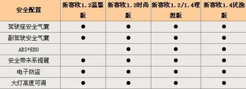 首先說(shuō)說(shuō)大家注重的安全配置方面,這一點(diǎn)新賽歐做得還算可以,全系都擁有雙安全氣囊,不過(guò)限于價(jià)格,入門(mén)車(chē)型缺少ABS+EBD多少有些遺憾了。如果能夠全系標(biāo)配雙安全氣囊以及ABS+EBD,那真有些當(dāng)年賽歐的樸素古風(fēng)了。