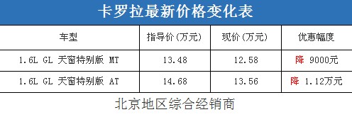 近日,編輯從北京地區(qū)綜合經(jīng)銷商處了解到,卡羅拉有1.6L特別版現(xiàn)車(銀色、黑色、紅色);目前購(gòu)車的優(yōu)惠幅度與09年末相比有了顯著提升,最高優(yōu)惠1.12萬(wàn)元,性價(jià)比還不錯(cuò)。據(jù)經(jīng)銷商透露,消費(fèi)者要想以這個(gè)價(jià)格提車,需要在店內(nèi)做一條龍服務(wù),其中車輛保險(xiǎn)的折扣需要消費(fèi)者到店與銷售人員詳談才能夠確定。以下是卡羅拉最新價(jià)格變化表: