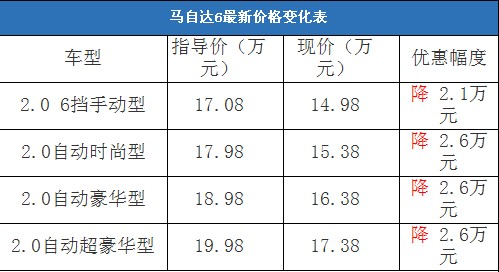 近日,編輯從北京地區(qū)某一汽馬自達4S經(jīng)銷商處了解到,馬自達6的現(xiàn)車充足,但是全系只能優(yōu)惠3000元,更多的優(yōu)惠需要消費者到店詳談才能確定。相比之下,北京地區(qū)綜合經(jīng)銷商處的馬自達6自動擋車型的現(xiàn)車比較充足,購車可以優(yōu)惠2.6萬元,手動擋的現(xiàn)車較少,可以優(yōu)惠2.1萬元,降價幅度與去年末相比有了比較可觀的提升。不過據(jù)經(jīng)銷商透露,消費者要想以這個價格提車,需要在店內(nèi)做購車一條龍服務,其中車輛四項基本保險可以打8.5折(約合4800-5300元左右)。以下是馬自達6最新價格變化表: