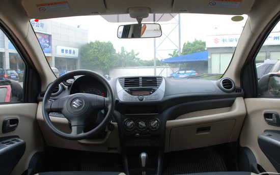 新奧拓的內(nèi)飾里可以看到不少熟悉的元素,比如方向盤就跟雨燕一模一樣。儀表盤設(shè)計(jì)得很可愛(ài),轉(zhuǎn)速表被單獨(dú)放置在中控臺(tái)左角,小表盤增加了一些卡通色彩。而常規(guī)儀表盤的位置只有一個(gè)超大的表盤,顯示的是時(shí)速,讀取行車信息因此相當(dāng)便利。新奧拓的內(nèi)飾設(shè)計(jì)整體人給人感覺(jué)是比較大氣,不太像一款微型車的感覺(jué),這里面可能有復(fù)合式中控臺(tái)的因素。