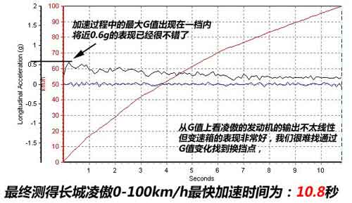 從加速圖表中看,凌傲在整個(gè)加速過程中表現(xiàn)的非常線性,尤其是手動(dòng)變速箱的表現(xiàn)比較突出。雖然在日常駕駛時(shí)感覺變速箱的2擋不是特別順暢,但在測(cè)試時(shí)特意注意了這個(gè)環(huán)節(jié),所以在加速過程中兩次換擋都非常平順且迅速,動(dòng)力輸出并沒有因?yàn)檫^長(zhǎng)的換擋時(shí)間而被浪費(fèi)掉。