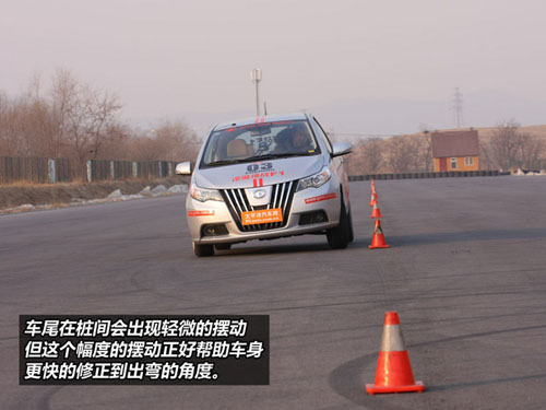 穿樁測(cè)試環(huán)節(jié),凌傲的轉(zhuǎn)向非常準(zhǔn)確,四輪四角的設(shè)計(jì)讓它在樁間顯得異常靈活。由于這款車 不帶ESP功能,所以車尾在樁間會(huì)出現(xiàn)輕微的擺動(dòng),但這個(gè)幅度的擺動(dòng)正好幫助車身更快的修正到出彎的角度?梢哉f,凌傲在裝桶間具有較高的駕駛樂趣。