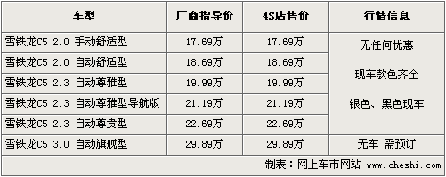筆者從東風(fēng)雪鐵龍經(jīng)銷商處了解到,目前C5全系有舒適版、尊雅版以及尊貴版現(xiàn)車供應(yīng),主要有銀色、黑色、藍(lán)色外觀可選,顏色不齊全,其他款需要預(yù)定,訂金為2000元-5000元。同時(shí)4S店提供2.3排量試駕車供消費(fèi)者體驗(yàn)。目前全系車型尚沒有出現(xiàn)優(yōu)惠幅度。