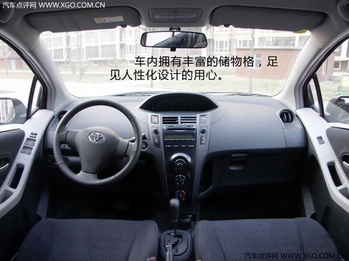 雅力士的內(nèi)飾設(shè)計是典型的豐田NBC風(fēng)格——中置儀表盤,這使得方向盤前看上去十分空曠,也會讓初次使用的用戶感到稍有不適。雅力士車內(nèi)最讓人稱道的地方在于其設(shè)計了大量的儲物格,對于總苦于手邊零碎小玩意沒處放置的人來說,無疑是最貼心的設(shè)計了。