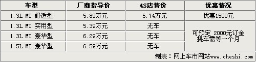 據(jù)海馬汽車4S店銷售人員介紹,在丘比特4款車型當(dāng)中,售價(jià)5.89萬(wàn)元的1.3L手動(dòng)舒適型性價(jià)比較高,也已成為丘比特銷售的主力車型,可以享受1500元的現(xiàn)金優(yōu)惠。其他兩款1.3L車型和1.5L車型均無(wú)現(xiàn)車,如想預(yù)訂需要交2000元訂金,到車時(shí)間為1個(gè)月左右。