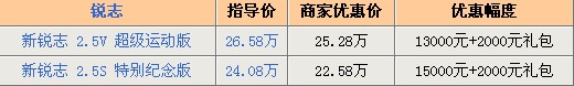 與皇冠共用底盤,發(fā)動機(jī),同為6檔手自一體的變速箱,這是銳志最大的亮點。雖然較小的車內(nèi)空間一直讓人詬病,但對操控性的執(zhí)著依然得到不少車友的認(rèn)可,銷量與優(yōu)惠幅度都比較穩(wěn)定,現(xiàn)在主打的2.5S特別紀(jì)念版打出1.5萬元的現(xiàn)金優(yōu)惠,算是比較理想的價格,有興趣的朋友可以考慮出手。