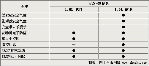 全新捷達雖然冠上全新二字,但消費者仍然不會對捷達的配置有非常大的興趣。對于這樣一款進行過幾次改型的老車型,配置方面不會有太大變化。在1.6L前衛(wèi)車型上,標(biāo)配了前駕駛員與副駕駛安全氣囊,,保證了前排乘員的安全。駕駛員一側(cè)的安全帶帶有未系提示,時刻提醒駕駛員保證自身安全。全系標(biāo)配的配置還有電子防盜系統(tǒng)、車內(nèi)中控鎖及ABS+EBD系統(tǒng)。1.6L伙伴并沒有裝備安全氣囊,配置較低。