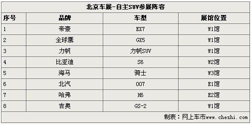 這其中,吉利帝豪品牌有EX7、GX5兩款SUV推出,而比亞迪S6也終于將在車展亮相,海馬騎士將在車展正式上市,北汽集團將推出自主SUV-007,長城汽車依托原有越野車領(lǐng)域的優(yōu)勢,將在車展推出高端SUV車型H6,這8款SUV車型從小到大,涵蓋了從城市到越野SUV的不同類型車款,滿足消費者的個性需求。