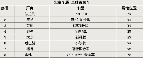 隨著中國汽車市場地位的日益提高,各大廠商越來越重中國市場,因此北京車展也引來了越來越多的全球首發(fā)新車。這屆北京車展將有8款新車全球首發(fā),包含新5系Li和E級加長版,兩款新車將在車展后國產(chǎn)上市。大眾集團(tuán)除了占據(jù)一個(gè)展館之外,也帶來了兩款全球首發(fā)新車,分別為全球A8L和新輝騰。