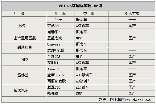 “暢想綠色未來”為主題的2010北京國際車展,將于4月25日-5月2日在北京中國國際展覽中心隆重舉行,屆時(shí)國內(nèi)外汽車品牌將有眾多的新車、概念車首發(fā),而在車展開始日期日益臨近之際,各個(gè)品牌的參展車輛也陸續(xù)浮出水面。為了能夠讓您更好的了解本屆北京車展,網(wǎng)上車市將各個(gè)場(chǎng)館即將發(fā)布的車型進(jìn)行匯總,以便對(duì)您的參觀有所幫助,下面就讓我們一起來了解一下E2館有哪些新車發(fā)布。
