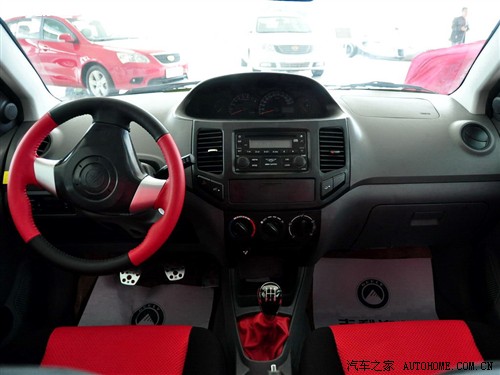 內(nèi)飾在延續(xù)了普通版金鷹的同時,又進行了一些小的改動和創(chuàng)新,最明顯的變化莫過于紅黑相間的新造型方向盤和運動風(fēng)格明顯的座椅,另外,擋把遮擋處的顏色也改為紅色的皮革材料,鋁合金踏板也有紅色元素裝點。其它方面依然維持了普通版金鷹的造型,中置儀表今天看來已沒有任何亮點可言,整體的功能和配置還是講求實用為主。