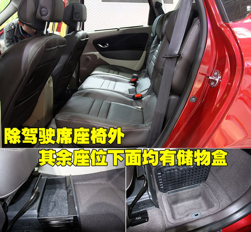 雷諾新風(fēng)景的后排空間比較充足,對(duì)于一般身材的乘員來說都能夠得到比較充足的腿部空間。另外座椅下方還配備了實(shí)用的儲(chǔ)物盒,使用簡(jiǎn)單方便。座椅兩側(cè)的B柱上還設(shè)計(jì)了左右獨(dú)立自動(dòng)空調(diào),為消費(fèi)者提供了舒適的乘坐環(huán)境。
