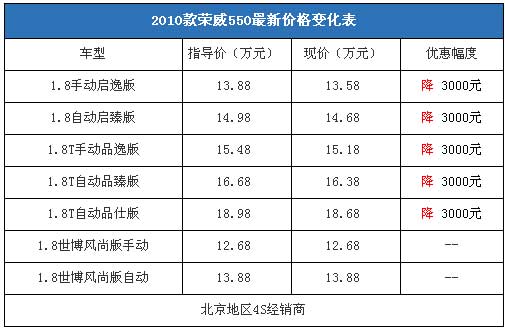 近日,編輯從北京地區(qū)上汽汽車4S經(jīng)銷商處了解到,榮威550全系車型的現(xiàn)車比較充足,購(gòu)車可以優(yōu)惠3000元左右。據(jù)經(jīng)銷商介紹,在春節(jié)期間推出的榮威550賀歲版在世博會(huì)到來(lái)之際改名為“世博風(fēng)尚版”繼續(xù)銷售,因?yàn)橘R歲版車型的性價(jià)比較高,沒有大幅度的現(xiàn)金優(yōu)惠。店內(nèi)銷售人員介紹,如果不需要現(xiàn)金優(yōu)惠,消費(fèi)者在店內(nèi)可獲贈(zèng)世博版大禮包,有機(jī)會(huì)免費(fèi)參加上海世博會(huì)。