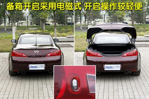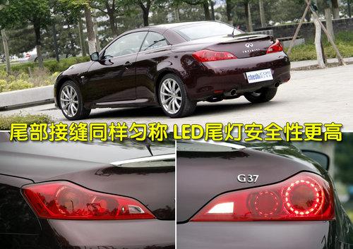 英菲尼迪G37敞篷版較四門版車型更為動感時尚,整體設(shè)計偏向年輕化群體,外觀整體線條流暢,圓潤的設(shè)計絲毫不顯突兀。外觀做工沿襲了英菲尼迪造車一貫的細膩風格,模具制造與噴漆工藝均屬上乘,前大燈與引擎蓋接縫十分勻稱,保險杠、發(fā)動機蓋及水箱框架等周圍的接縫同樣非常勻稱。