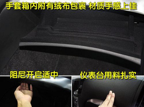 儀表臺采用軟性塑料材質(zhì),手感舒適,用料比較扎實。副駕駛席手套箱采用阻尼設(shè)計,整體開合力度適中。內(nèi)部附有絨布,做工手感一流。但儲物能力一般,只可放入一些小的物品。