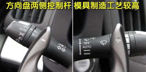 方向盤兩側(cè)的燈光、雨刷控制桿模具非常精細(xì),做工細(xì)致,實際使用當(dāng)中搬動及轉(zhuǎn)動兩側(cè)開關(guān)均無松垮的感覺。