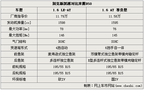 別克新凱越現(xiàn)在縮小了產(chǎn)品線(xiàn),留下兩款搭載1.6L的發(fā)動(dòng)機(jī)車(chē)型。這款1.6L發(fā)動(dòng)機(jī)最大輸出功率為78kw,最大輸出扭矩為146Nm,比起奔騰B50車(chē)型的1.6L發(fā)動(dòng)機(jī)在功率上多出了2Kw,扭矩超出1Nm,再加上奔騰B50比新凱越多出的25Kg的車(chē)重,動(dòng)力方面稍顯弱勢(shì)。懸架部分奔騰B50優(yōu)勢(shì)明顯,前懸架雙橫臂式獨(dú)立前懸架帶橫向穩(wěn)定桿、后懸架E型多連桿式獨(dú)立后懸架帶橫向穩(wěn)定桿,對(duì)車(chē)身在過(guò)彎的是支撐更顯運(yùn)動(dòng)感覺(jué),而經(jīng)過(guò)通用細(xì)心調(diào)教的新凱越則是以前懸架麥弗遜式獨(dú)立式、多連桿獨(dú)立后懸架的配合突出舒適感受。