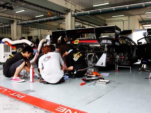 其實SUPER GT在比賽之前,大會是可以將維修通道開放30分鐘的,這時會有大量觀眾涌入。而每個車隊都將在門前拉起警戒線,禁止所有觀眾進入,但這些車隊都會在適當(dāng)?shù)臅r候發(fā)放些紀(jì)念品或是請出各自的車模與觀眾進行互動。