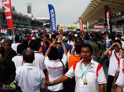 正賽開始前,所有賽車和模特都將走上賽道,此時會對賽會嘉賓開放賽道15分鐘,以供大家與自己喜愛的車手和模特們拍照。只是在這短短的15分鐘內(nèi),賽道上足以變得水泄不通,可見SUPER GT的火爆程度。