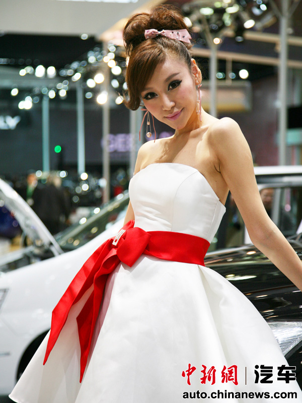 北京車展群芳競艷:靚模一襲白裙秀香肩