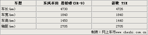 東風本田思鉑睿SR-9的原形車就是本田高端品牌謳歌TSX,因此這兩款車型在車身尺寸上沒有太大的出處,這一點從上表得數據我們就可以看出。東風本田思鉑睿和謳歌TSX在軸距方面完全相同,都是2705mm。因此兩款車型在內部尺寸上不會有太大的差距。思鉑睿和謳歌TSX這兩款車型不僅車身尺寸大致相同,就連設計風格也同出一轍。