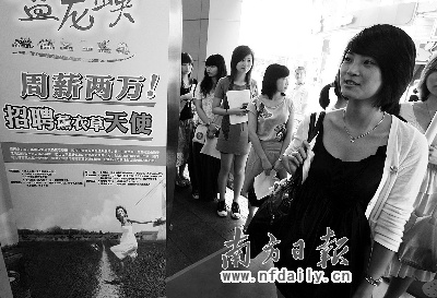 德慶盤龍峽2萬元周薪招聘“薰衣草天使”活動進入了現(xiàn)場招聘環(huán)節(jié)。記者昨日在招聘現(xiàn)場看到,應聘人需先填寫報名表格經過第一關面試,過關后進入第二關———拍照,而第二關讓不少人笑稱為“選美比賽”。