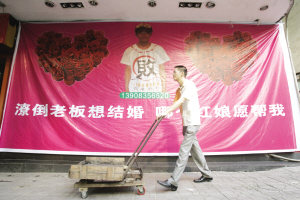 面對朋友的反對,他表示已做好心理準(zhǔn)備,橫幅懸掛一周未果后,他將啟程前往成都,將征婚范圍再擴(kuò)大。昨日,記者采訪離開時,還沒有人前來應(yīng)征。(記者 蔣煬)