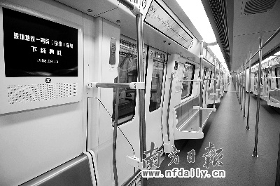記者發(fā)現(xiàn),車廂比廣州3號(hào)線地鐵要寬敞。據(jù)介紹,廣州3號(hào)線地鐵車輛是B型車,寬度只有2.8米,又是直線型車體。相比之下,深圳地鐵一號(hào)線(續(xù)建)車輛車體寬達(dá)3.1米,且采用鼓形車體,視覺效果也要寬敞許多,據(jù)悉,最大載客量可達(dá)2502人。
