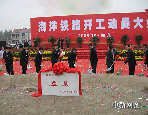 海洋鐵路為國家二級鐵路,全長七十七公里,總投資達(dá)十八點(diǎn)三億元。其中,跨海鐵路大橋自江蘇南通海安至如東的洋口港鐵路終點(diǎn)站引出,全長十八點(diǎn)七公里,由上海鐵路局和如東縣雙方共同建設(shè),二〇一〇年將全面建成通車。完