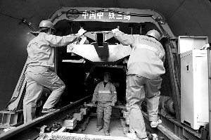鋪軌儀式上,地鐵4號(hào)線副總經(jīng)理趙衍發(fā)介紹,4號(hào)線鋪軌總里程超過28公里,為保證工期,在南北兩端2個(gè)鋪軌基地之外,沿線又增設(shè)了馬家堡西路、新街口、白石橋3個(gè)鋪軌基地。昨天馬家堡西路按期開始鋪軌,預(yù)計(jì)5月份可以到達(dá)北京南站。其余4個(gè)鋪軌基地將分別在6月、7月開始軌道雙線建設(shè)。明年2月,馬家堡車輛段出入線段和北宮門站停車場區(qū)段完成鋪軌后,全線完成軌通。“很緊張,又要保工期,又要保安全,我們奧運(yùn)期間都不會(huì)停工!