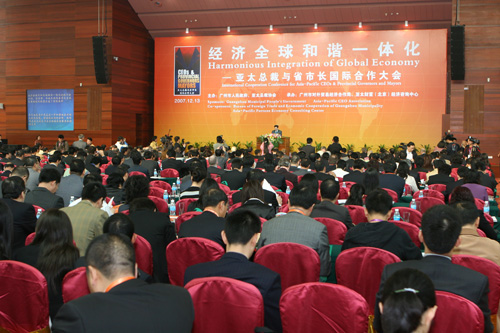 本次大會(huì)開幕式,由廣州市副市長陳明德主持,張廣寧市長和鮑勃•霍克主席分別致辭。張廣寧市長指出,當(dāng)今世界,經(jīng)濟(jì)全球化和區(qū)域經(jīng)濟(jì)一體化進(jìn)程不斷加快,為各國、各地區(qū)經(jīng)濟(jì)要素在全球范圍的優(yōu)化配置和經(jīng)濟(jì)效益的提高創(chuàng)造了有利條件。但是目前全球化進(jìn)程也充滿矛盾和不均衡,如何正確認(rèn)識(shí)和妥善應(yīng)對(duì)全球化,建立長期聯(lián)系的穩(wěn)定有效機(jī)制,推進(jìn)全球化進(jìn)程朝著均衡、普惠、共贏的方向發(fā)展,創(chuàng)建共同繁榮的和諧世界,是許多具有遠(yuǎn)見卓識(shí)的人士共同關(guān)心的重大問題。張市長呼吁,亞太地區(qū)各方更應(yīng)進(jìn)一步加強(qiáng)相互間的交流與溝通,增進(jìn)彼此間的合作,共同促進(jìn)亞太地區(qū)乃至全球經(jīng)濟(jì)的繁榮和持續(xù)發(fā)展。